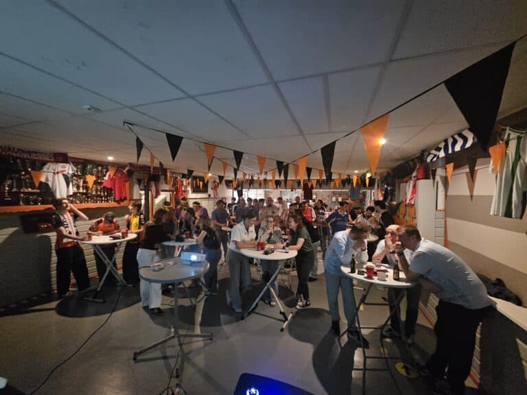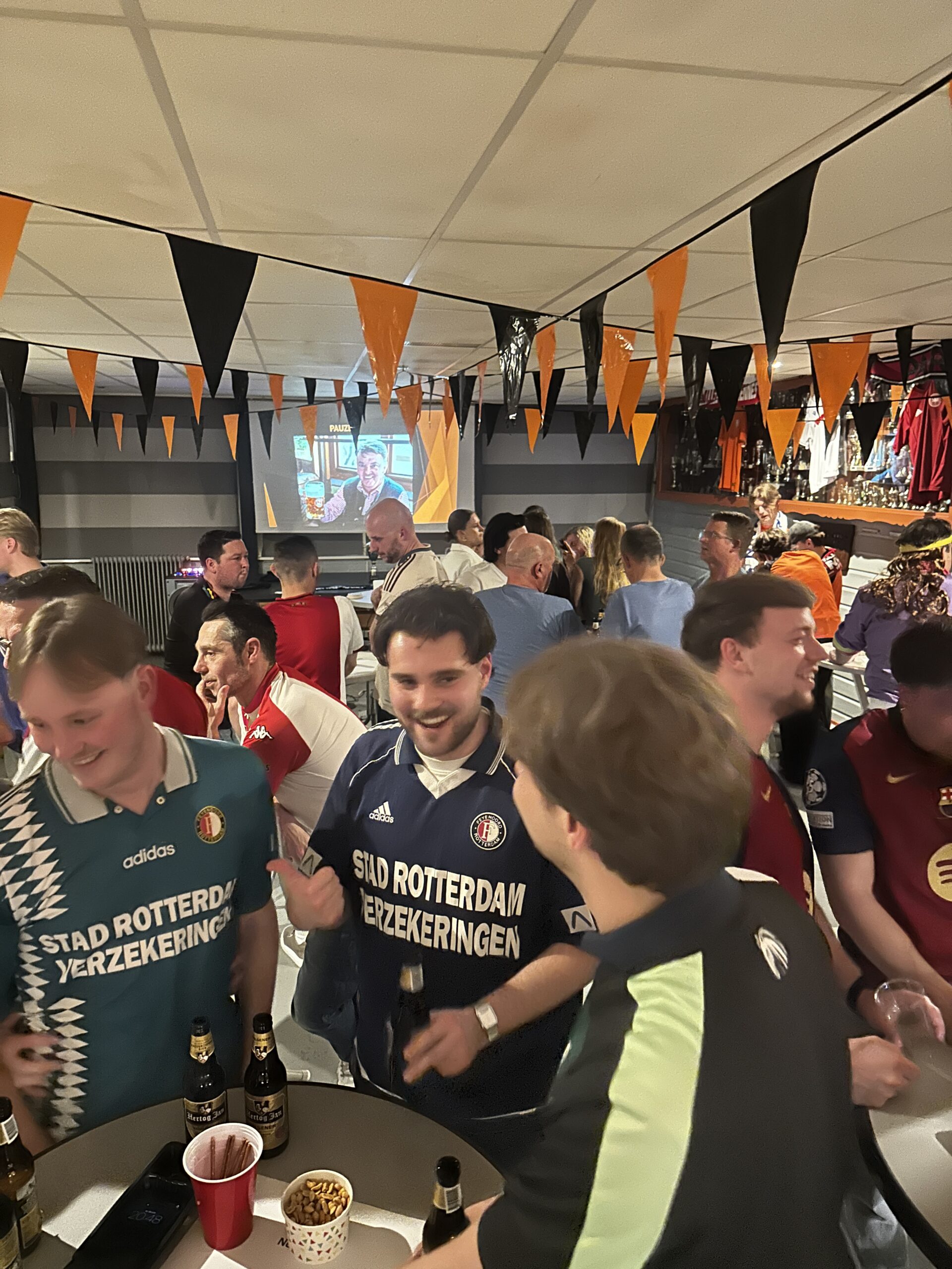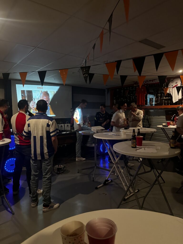 Terwijl de ene helft van de kantine diep in de statistieken dook, dacht de andere helft vooral aan het turven van de shots op de drankkaart. Hoewel het niveauverschil qua voetbalkennis hier en daar pijnlijk duidelijk werd, was de sfeer er niet minder om. Een bomvolle, luidruchtige en bovenal enorm gezellige kantine.